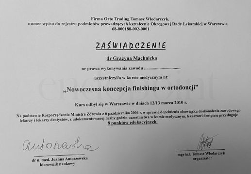 szkoleniach i konferencjach w Polsce i za granicą, w tym zdobywając tytuł Master in Orthodontics na Uniwersytecie San Jorge w Barcelonie. Jej indywidualne podejście do każdego pacjenta, zwłaszcza najmłodszych, sprawia, że wizyty przebiegają w miłej i
